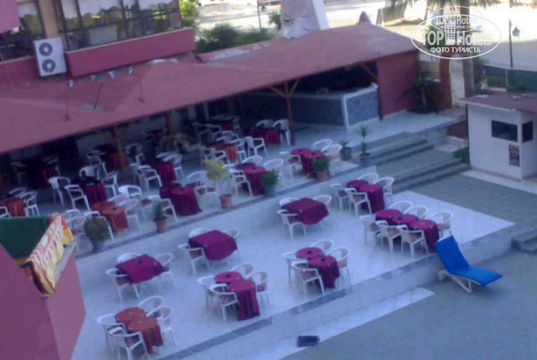 По прилёту в аэропорт Антальи удивило,что наш багаж преспокойно катался по кругу на транспортёре и когда мы его нашли и забрали никто даже не удосужился проверить свой мы забираем или нет.Но слава богу всё обошлось.Быстро нашли своего туроператора из ''Пегаса'',сели в автобус и минут через 15 отправились в отель.Размещение прошло быстро и без проблем.Номер получили на 3-ем этаже с видом на бассейн и море.Номер просторный с балконом,телевизором,сплит-системой,холодильником и сейфом.Пользование сейфом стоит 1 доллар в сутки.В ванной фен.Убирали номер ежедневно со сменой полотенец. Сам отель небольшой,уютный.Своей территории почти нет.Только здание корпуса,бассейн с баром и теннисный корт.До моря метров 100-120 по хорошей дороге.Свой небольшой пляж,но места всем хватало.Лежаки,матрасы,зонтики - всё бесплатно.На пляже работает безалкогольный бар - напитки,кофе,чай.С 12 часов дня пекут бесплатные лепёшки с колбасой,картошкой и сладостями.Море великолепное;чистое и тёплое. Питание изобилует несколькими десятками видов салатов.На гарнир подают картофель-фри,вермишель,либо рис.Большой выбор сладких мучных изделий.Регулярно был арбуз или дыня.Кто захочет наесться мяса,тому не повезёт.Колбаса и сыр соевые.Из мяса только курица.Три раза за неделю давали рыбу - форель.Так что мясоедам приходится попоститься.Спиртное можно пить с утра,до половины 12-го ночи.Водка,''Раки'',джин-тоник и великолепное ледяное пиво. Анимация слабенькая,но иногда устраивали неплохие шоу.Треть отдыхающих - дети.Отель подходит для спокойного семейного отдыха. Обслуживание на высшем уровне.Все вопросы,если они и были решались быстро и без проблем.Официанты и обслуживающий персонал улыбчивы и доброжелательны.Все отдыхающие либо из России,либо из Украины.Отель соответствует своей недорогой цене,где можно спокойно и хорошо отдохнуть.Кто хочет чего-то большего,вокруг полно дорогих отелей.