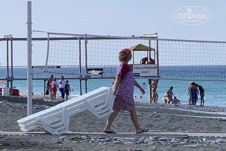 Сервис на пляже, отдельная тема - ни кто не писал, что лежаки и зонты вы будете таскать сами. И даже доставать их утром из места хранения то же, сами. И старики и женщины и дети. Тут проявляется весь Российский сервис. А так пляж хороший, хотя в пик сезона людей много. Ни кто дистанции ни какой и не думал соблюдать.