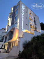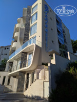 Расположен отель на горе, метров 500 крутой подъем по серпантину, в жару при 34 градусах это невыносимо, но есть и свои ++) красивый вид на город и море.