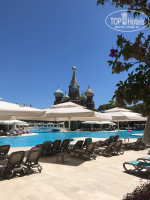 Отдыхали с12.08.20 по 20.08.20. Прибыли в отель в 9.00 хотя мы были одни из первых из России на ресепшен сразу сказали , что номер не готов, но за определенную сумму можно получить карточки. После недолгих дебатов все таки дали номер бесплатно. Просто зачем сразу врать о неготовности номера если он есть в наличии, когда зашли в номер там была такая холодина, как будто кондей работал не меньше суток, после его выключения сразу запотели все зеркала а ванна пол и стены покрылись конденсатом. Да номера старые, ушатанные,но довольно просторные, чистые. Убирали каждый день, постель поменяли за восемь дней два раза, бар , шампуни, полотенца пополняли каждый день. Что удивило персонал всего отеля по-русски не понимает, только единицы еле разговаривают.Территория большая красивая. Пляж большой лежаков много. Первые дни до 11.00 пляж был почти пустой, но потом начали прибывать наши туристы и в 9.00 уже мест стало маловато.Когда приехали отель был забит Турками почти полностью в столовой огромные очереди у бассейна все занято, оказывается у них был праздник, потом стало немного меньше. В столовой на входе измеряют температуру и дают маски. Еду накладывают в тарелки. Описывать ассортимент не буду , но средненький особого ничего нет. Из морепродуктов ничего не было кроме сибаса. На пляже работает два бара с 10.00, там только газировка пиво вода спиртное, а в третьем баре с 10.00 можно перекусить. С 12.00 раздают фрукты , мороженое, гамбургеры картошка вафли месть ещё Снейк бар где можно перекусить. Порадовала анимация , был акробаты , фокусники, танцевальное шоу, Свето-лазерное шоу каждый день что то новое. Вообщем в целом отель нормальный дя отдыха, но людей становиться оченнь много , потому что номеров в неё очень много. Единственно в лобби всегда было тихо и спокойно там можно в баре и чай и кофе и многое другое выпить. Море очень тёплое до обеда чистое спокойное после средние волны. На ресепшене турчанка крашеная блондинка очень негативный человек.
