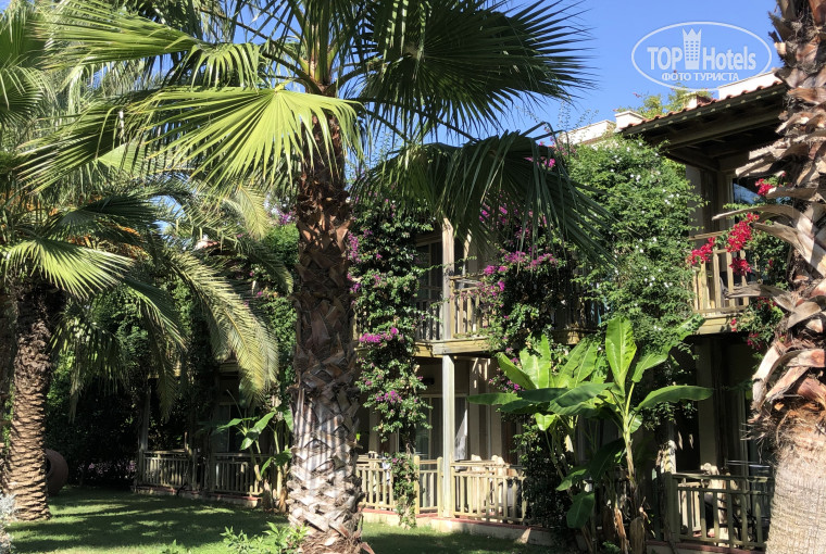 Красивый отель, много зелени и деревьев с гранатами, лимонами, апельсинами, оливой. Уютные бунгало, внутри которых всё есть, чтобы было комфортно отдохнуть. (Есть главный корпус со стандартными номерами и семейные номера, знакомые сказали что очень хорошие и просторные) Приборка каждый день со сменой полотенец и пополнением мини бара. Ресторан чистый, светлый, вмещает большое количество гостей. Еда разнообразная, вкусная, на любой выбор. Для детей есть отдельное меню. Отель европейского плана, Отдыхающих из Германии примерно 70% и из-за них анимация более спокойная, пляжный волейбол, боча, дартс. Вечером мини-диско, шоу для всех и/или танцы, живая музыка, только для молодёжи нет дискотек совсем🙊 (Возможно в другие месяцы всё иначе)