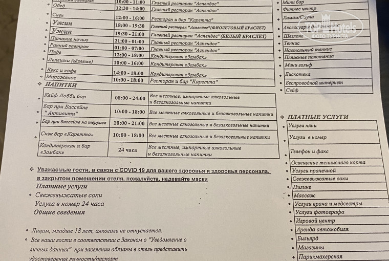 Оценка сервисов отеля автором