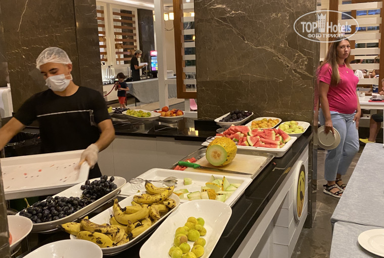Поесть как говориться можно, и наесться, но этот отель я выбрал только по Еде (по фото туристов). А зря. В Общем ресторане Крабы были раза 3 и то сваренные не по технологии (мясо должно отлипать от костей краба) вообщем один раз попробовали и все. Хоть фото красивые получились. Тортов ни одного! Как в других отелях круглые торты и люди отрезают себе сами (пусть официант отрезает не важно). Одни маленькие пирожные с размер пол ладошки.