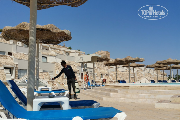 По самому отелю, все обработывается дезрастворами, даже на пляже и у бассейна.