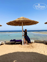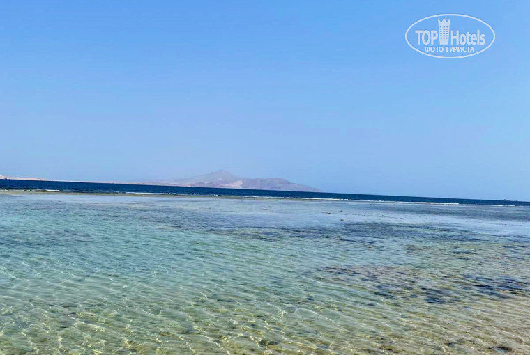 Пляж. Вход в воду с понтона или с берега (не далеко - до рифа), рекомендую взять коралки. Красивый вид на остров Тиран. Есть бар, также дают мороженое.