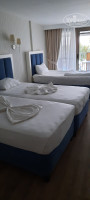 Были в этом отели с друзьями с 10.09 по 20.09. Пока свежие впечатления пишу отзыв. В отель приехали утром,не успели позавтракать, как уже заселили в номера. Номера дали рядом, даже с видом на море. Номера хорошие, всё работает ,убирались хорошо, постельное белье чистое. Территория зелёная, красивая и ухоженная, всё в шаговой доступности. Понравилась концепция ресторана. Перед входом меряют температуру, весит антисептик,лежат маски,хочешь бери, но никто не заставляет. Всё очень грамотно расставлено, очередей нет. Мы ходили обедать позже, еды достаточно и всё всегда есть. Еду раздают за стеклом, так даже лучше, меньше бардака, положат столько сколько скажешь, даже больше. Всё очень чисто, вилки и ложки в одноразовой упаковке, столы застилают после каждого посетителя довольно быстро. Еда разнообразная, каждый день два три вида рыбы, в том числе за 10 дней были стэйки из красной рыбы раза три, раки один раз и суши один раз, из мяса были курица, индейка, говядина, баранина в разных видах,салаты на выбор,фрукты и т.д .На обед и ужин красное и белое вино в бутылках, пиво само собой, чай, кофе. Отдельное спасибо кондитеру, давно не ели таких вкусных сладостей. Кроме главного ресторана пекут лепёшки с 10 утра ,при выходе из главного корпуса есть кондитерская, на пляже ещё один ресторан, где есть пицца, бургер, паста, картофель фри. Теперь бары, их три . Начну с лобби, работает круглосуточно, есть как местное так и импортое спиртное,всё входит в стоимость, есть что-то и за отдельную плату,из импортного водка смирнофф ,текила ,коньяк и виски, само собой всякие коктейли , стандартный набор. Во всех одно и тоже .Второй бар при выходе из главного корпуса, возле него с 11 утра мороженое разных видов в упаковке. Третий бар на пляже возле пирса ,там каждый вечер или живая музыка, или диджей ,работает до 24ч .Пляж галька, далее сразу большие камни, для меня заход не очень,купались с пирса без проблем, хотя народу с берега купалось много даже с детьми. Вода очень чистая и тёплая,лежаков на пляже достаточно, хотя кто-то и с раннего утра занимает, если бы уважали других и не бросали свои вещи с утра до вечера, просто чтоб занять, то было бы вообще без проблем. Можно ещё полежать на газоне под соснами, ну как и везде, возле бассейна .Везде чистота и порядок, всё трут, метут, обрабатывают атисептиком, по всей территории висят санитайзеры, персонал весь в масках и перчатках, все доброжелательные. Отелем остались очень довольны. Маленькие недостатки можно найти везде, не стоит обращать внимание и тогда отдых будет хорошим. Кого интересует рынок, он расположен примерно в 1,5км от отеля на лево, туда поехали на такси, так как первый раз в этом отеле и не знали дорогу, стоит 5$, а обратно пешком, примерно 20 минут, есть все что душе угодно.