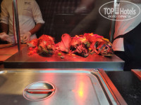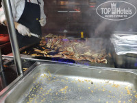 Питание не слишком разнообразное, но всегда найдется, что покушать. Завтраки скудные, каждый день одно и то же, не было даже нормальных блинчиков. На обеды в столовую ходили редко, чаще брали ребенку пиццу на пляже, т.к. он плохо ест и кроме макарон в столовой поесть сыну было нечего, а никакого детского стола нет. Ужины более разнообразны, но и людей на ужин приходит на много больше. Сладости в отеле хорошие, фрукты часто или перезревшие (например, мягкие в кашу бананы, осыпавшийся виноград) или зеленые (дыни всегда были незрелые). Горячие блюда в основном вкусные, всегда положат именно тот кусок, что попросишь, не было проблем попросить положить чего-то побольше. Официанты не справляются ни с уборкой столов, ни с тем, чтоб принести напитки до того, как ты все съел. Даже утром, когда народа мало, получить от официанта кофе было мало шансов, проще сходить самим. Совсем беда была в выходные, когда в отеле было много местных со своими огромными семьями.