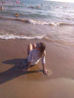 На пляже песок, лежаков всегда хватало.