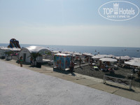 Город-отель Бархатный сезон, включает в себя три квартала, по которым можно легко перемещаться. Детский клуб Тукан находится в квартале Семейный, квартал Спортивный рядом с природным орнитологическим парком, а Екатерининский ближе всего к морю. Пишу отзыв, отдыхая с семьёй на последней неделе сентября. Тепло (выше 26°С), вода комфортная, слегка привыкаешь и наслаждаешься, и с погодой так же повезло (ни облачка). Расскажу я только про один квартал, и это Екатерининский, тот самый, который ближе всего к морю. Да, вы правильно прочитали, так как по моим меркам "первая линия" это прямой выход на пляж, чего тут нет. Между последним корпусом и пляжем построен новый ряд апартаментов с панорамными окнами, за ними технические здания, закрывающие вид на море, далее аллея покупок, дорожка набережной с трассой для вело/электро и шестиметровый спуск по бетону к галечному пляжу. Пляж в крупную гальку, нужна обувь с плотной подошвой. Спуск крутой в воду. Вода чистейшая. Рекомендую пройтись чуть левее до конца набережной, там галька мельче, народа меньше, а море такое же прекрасное. Возьмите зонтик свой. Лежаки и зонты все платные по 200-500р, есть беседки по 4000 день с диванчиками.
