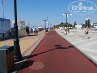 Здесь нельзя остаться голодным, холодным или куда-то не дойти, всё зависит от вкусов и желания, много где можно покушать и на каждом шагу прокаты вело/электро техники на любой вкус. Есть достаточно крупные трехколесные "тачки" на которые нужны права. На каждом шагу экскурсии, цены везде +/- одинаковые, кто-то оговаривает конечную сумму, кто-то привлекает низкой ценой, но по факту выйдет на то же. Брать экскурсии у гида или у местных разницы не вижу. В отеле лучше брать только завтраки. Ассортимент ужина скромный, не разнообразный, с десертами отдельная беда, нет стаканов/кружек и приходится пить из маленьких чашечек - не удобно, кофемашины Nescafe (как в отелях других) попросту нет, а сам зал это лабиринт из переделанных комнат, где "шведский стол" стоит в проходе. Узнавали, цена на посещение шведского стола в обед 650р, в ужин 550р за человека. А вот в столовых обед на троих обойдется в те же 650р и ассортимент чуть лучше. Если вы выбрали это место, то изначально настройтесь на "русский бизнес" или "бизнес по-русски". Скидок нет и бюрократия завуалированная под евростандарты, начиная от заезда, где заселение в 14 и не минуты раньше, даже если смертельно устали, с ребенком, даже если номер уже готов, всё равно это будет считаться раннее заселение и попросят 2500 за услугу. После процедуры регистрации, все вещи, это прождав пару часов до времени Х (14:00), тащим сами до корпуса проживания, корпус ищем глазками сами. Замечаем, что инфраструктура оборудована для проживания инвалидов, везде пандусы и удобные спуски. Много колясочников. В номерах не сорите, уборщицу вижу крайне редко, мусор выносим сами во двор, там полноценная помойка с баками, как в любом городе. В номерах обязательно что-то не работает, лично у нас сломана ручка в ванную и не работал светильник на прикроватной тумбочке. Балкон есть, не отельный (панорамный/стеклянный), а обычный закрытый и застекленный, в общем без экзотики. ТВ, чайник, есть цифровой Ростелеком, вай-фай фри (не персональный) слабенький отваливается и долго ждешь смс с кодом для входа. А 4G хорошо ловит. По вечером есть анимация на центральной площади, начинается рано, во время ужина, не совсем удобно. Сцена, не яма и не закрытое что-то, жалко гостей прилегающих корпусов. В целом хорошо, территория чистая, до моря идти близко. Лично нам не повезло, в наше время проходила формула1, пробки в городе не давали нам побывать на красной поляне, а поезд туда отправляется только утром и через час уже возвращается, оставляя гостей на произвол судьбы (голову оторвать кто расписание составлял). Морские прогулки на яхтах так же пропали, море закрыли для плавания из-за прилета ВВП и ВИП гостей формулы на несколько дней. Вообще тут хорошо тут, особенно после холодной дождливой Москвы.