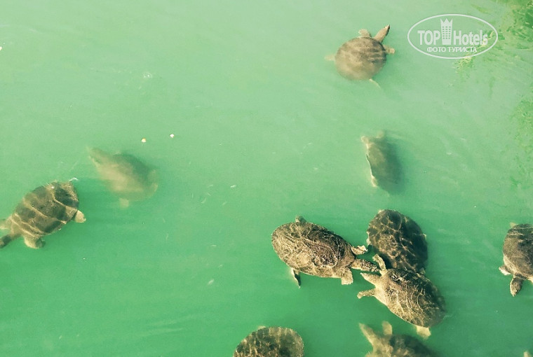 Справа от отеля по пути на пляж есть канал,переходящий в море,где можно посмотреть на водных черепашек-они чудо)обязательно сходите,дети и взрослые будут в восторге,их можно кормить)