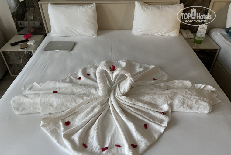 Новый, открыт в августе этого года , со всеми удобствами и отличным обслуживанием. Быстро заселили , чистые номера, огромный выбор еды на шведском столе, аквапарк, карусели как для детей, так и взрослых, хорошая анимационная программа, крутые вечерние шоу и дискотека, большой бассейн , до моря 15 минут пешком, но для тех , кто не хочет ходить, ездит автобус От отеля и довольно часто, хороший бар как алкогольных так и безалкогольных напитков, огромный выбор мороженого и молочных коктейлей.