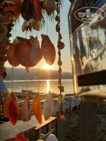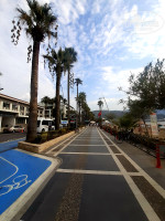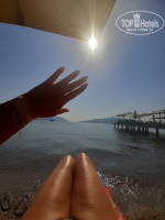 Т.к. отель расположен на второй линии, но это совсем всего 100 метров от моря. Собственного пляжа у отеля нет. Все пользуются близлежащими. Средняя цена коктейля на пляже 17-20 лир (170-200 руб). В придачу на весь день идёт шезлонг с зонтом и wifi. Вдоль моря баров великое множество, пляжи у всех оборудованы по-разному и красиво, выбирайте любой. Но можно пройти влево метров 500 до бесплатного городского пляжа, шезлонгов там нет, но есть зонтики, туалет, душ, переодевалка. На входе сидит охрана, обязательно измеряли температуру и обрабатывали руки санитайзером.