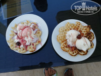 ПИТАНИЕ: твёрдая 5 !!! Завтракали мы в снек- ресторане возле бассейна, так как в основном здании Элеганс было всегда очень много людей. Обедали строго в " Олимпос". В нём нам очень нравилось: форель, куриный шашлык, пицца на тонком тесте..А какие там антрекоты!!! Бывало принесут антрекот размером с футбольный мяч, а бывало и маленький, но тем не менее вкусняха ещё та )))Отдельный респект кофейне, которая открывалась в 16.00. Горячие вафли с мороженым и творожный чизкейк с вареньем , это шедевр. Ужинали в уличном ресторане Garden. Только на 8й день своего пребывания в Сере я узнала о существовании айрана. Вроде и не бухаю...