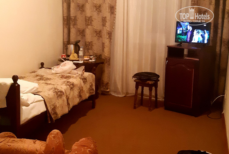 В номере есть небольшой плоский телевизор,холодильник,чайник,фен. Из туалетных принадлежностей мыло,шапочка для душа,туалетная бумага. Гелей для душа,шампуней нет,привозите свои. Туалетная комната просторная,сантехника исправная,душ за шторкой,но бортик высокий и вода на пол не вытекает.Мебель в номере нормальная,не старая,есть шкаф,тумбочка,кресло и столик. В номере нет кондиционера,зимой он и не нужен,но летом ,думаю ,без него будет не совсем комфортно. Единственным неудобством для меня было отсутствие WiFi в номере,он есть только на первом этаже,когда мне нужно было поработать,я спускалась в фитобар с ноутбуком и там очень комфортно,за столиком,попивая чаек,делала свои дела. В баре есть небольшая библиотека,что мне тоже очень понравилось,за 2 недели прочитала 2 книги))