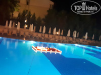 Территории у отеля НЕТ СОВСЕМ. Зона питания расположена в ресторане и вокруг бассейна, далее дорожка на выход к морю, справа от нее небольшая детская площадка и сцена, напротив которой были вечером выставлены стулья для просмотра шоу. Мороженое раздают в определенные часы там же.