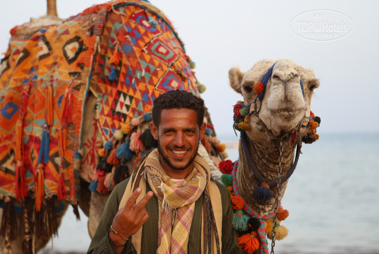 Пляж большой, рифа нету. Но если вы с ребенком, то пологий спуск и песочек вам понравится. Взрослым плавать с пантона. На пляже ходит верблюд Сережка, можно угостить вкусняшкой) Аквапарком пользовались только несколько раз, вроде все норм.