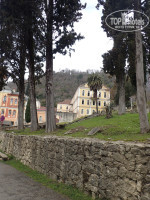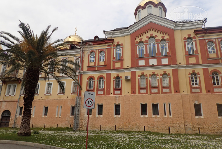 Удобное расположение в центре курортного городка Новый Афон, близко по отношению к достопримечательностям, к Афонскому монастырю и к морю. Отель рядом с горой, напротив был парк, озеро.