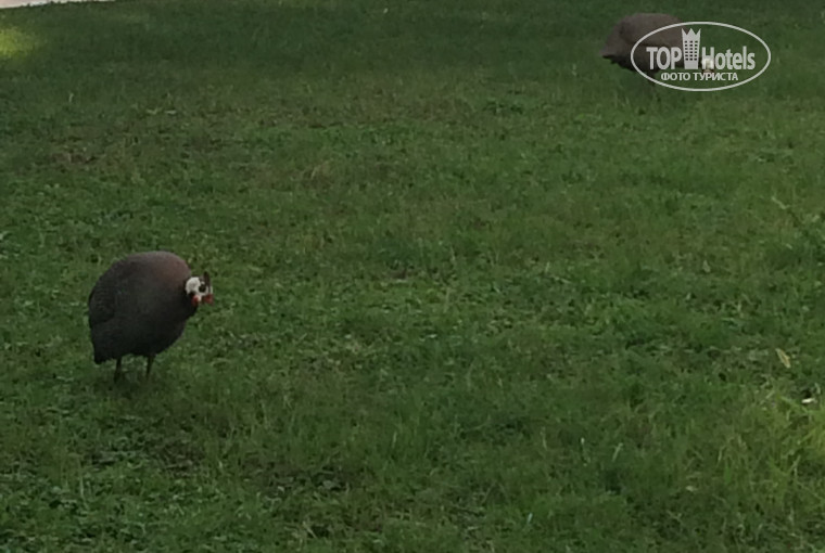 Много кошек на террритории, но они не мешают, иногда няшные котятки бегали. Правда их подкармливали колбасой, а к ней тянулось огромное количество муравьев. С утра на газончиках паслись цесарки, это было круто)