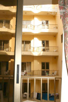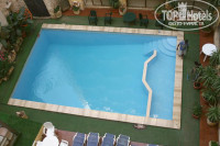 Территория у бассейна во внутреннем дворике отеля была постоянно ужасно грязная. Два афро-американца поутрам уныло гоняли по кафелю швабрами грязную коричневого цвета воду. Ковровое покрытие вдоль края бассейна было такого грязно-зеленого цвета, что лучше бы его и вовсе не было. Бледно-синие, выцветшие лежаки у бассейна тоже не оличались особой чистотой. Пару раз я наблюдал с балкона, как смотритель бассейна насыпал через решетку (под пржженым до дыры, в этом месте, ковровом покрытии) стаканами хлорку и наливал "на глаз" из канистры какую-то жидкость, от которой вода в бассейне приобретала ярко зеленую окраску и натурально дымилась... Другой бассейн, находившийся на крыше отеля, который на первый взгляд показался нам почище, оказался без воды, когда я первый и единственный раз решил искупаться не в море, после длившейся целый день поездки на о.Гозо.