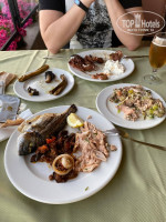 11. Еда: завтраки всегда однотипные, обед и ужин всегда разнообразные, ну прям очень вкусно. Еда есть и диетическая, и для детей, много рыбы (форель, саид, лосось,дорадо). Бывали морепродукты, салаты из морепродуктов. Много овощей. Постоянно были стейки, индейка на гриле, антрекот, баранина, соте. Ну прям голодным остаться нереально) И фрукты были, свежие) Много разновидностей десертиков. Возле бассейна можно взять детокс коктейли (при тебе делают из свежих фруктов и овощей) и мороженное. Вкусно очень!