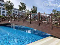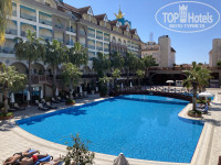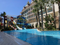 Сам отель красивый с небольшой территорией. Зона лобби, бары, террасы, территория у бассейнов - все чисто, аккуратно, красиво. Есть 2 бассейна: один - спокойный, второй - более активный с водными горками. Спа, сауна, хамам - все было открыто, работало. По вечерам - мини-диско, потом диско для взрослых. Визуально не понравился только главный ресторан - маленький (при полной загрузке отеля будет очень тесно), мрачный (мало света, как в подземелье).