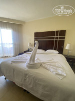 Прибыли в 4 утра , заселили не сразу примерно к 8 часам, даже за деньги отказали - объяснив тем что все загружено . Первое предложение по номеру было с видом на «сад» , но за 20$ нас любезно разместили на 1й линии с видом на бассейн и море. ( семьи с детьми не рекомендую так как с утра громко играет музыка у бассейна, но нам это не мешало) Читала отзывы о том что на первой линии плохие номера, но не соглашусь номер добротный, достаточно большой, сан узел новый, просторный стеклянный душ +вид отличный. Конечно мы посещали и 2ую линию , но 3 горки и совсем скучный бассейн нас не удивили к тому же большая его часть закрыта , а там где можно купаться - там очень мелко , в общем 2я линия далековато от моря (учитывая градус жары) ждать местный автобус не очень заманчиво.