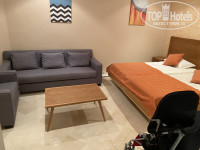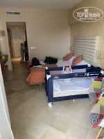 Добрый день!Хочу оставить отзыв об этом отеле.Поехали в Тунис впервые. Выбрали данный отель по тем критериям,которые были указаны в карточке отеля на сайте.Итак,разочаровало то,что на территории отеля отсутствует бассейн с горками и детская площадка,что было немаловажным пунктом для нашего отдыха с детьми..И это пожалуй единственный минус этого отеля.Он заявлен как 4 звёзды-оправдывает себя.По приезду нас заселили сразу (приехали мы в 12,заселение с 14),номер с видом на море,в нашей путевке был оплачен номер с одной комнатой-нам предоставили огромный номер с двумя комнатами.Уборка в номерах каждый день,белье,полотенца меняли каждый день.Питание-отличное,мясо,рыба,морепродукты,овощи,фрукты и сладости-все очень вкусное.Обслуживание в ресторане-на высшем уровне.На русском языке практически не говорят,но мы друг друга понимали,пользовались знаниями английского.Это не проблема была.Между завтраком,обедом и ужином можно было перекусить и попить что-нибудь в баре у бассейна.Так вышло,что людей отеле было очень мало.Пляж пустой,все свободно и на пляже и на территории.Море чистое,песок мягкий белый.Вечером были мини-диско для детей.Днём анимации нет,есть диджей,который ставит музыку у бассейна т на этом все.Нам этого вполне достаточно было)Территория отеля ухоженная и зелёная,до моря две минуты спокойным шагом.В самом холле есть бильярд,аэрохоккей,пара магазинчиков.Мы отлично провели время.Спасибо.