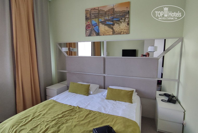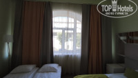 3. Мы взяли улучшенный семейный номер (№ 105) на первом этаже у общественной зоны (об этом чуть ниже). Номер небольшой, но вполне комфортный. Дизайнерский интерьер, приличный ЖК телевизор 40 дюймов, сейф, кондиционер, мини-бар, чайник, тапочки, кулер в коридоре. В номере много света и высокие потолки.
