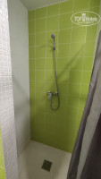 4. Отмечу симпатичный светло-зелёный душ с двумя нюансами - на полу не хватало резинового коврика и лейка душа протекала, сильно брызгая во все стороны и делая нашу скучную жизнь более весёлой и интересной.