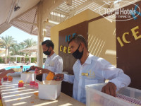 Отель выбирали спонтанно..Привлекло море и пляж. И так))) Летели аэрофлотом,быстро и без задержек. В самолете кормили вкусно и детям дарили подарки. Прилетели в Каир. На таможне всем сказали заплатить по 25$ на человека за визу (нас не предупреждали) Трансфер до отеля занял 7 часов.В отель приехали в 9-30 вечера и нас отправили на ужин. Изначально у нас был ваучер на CASCATA ROOM)..,но стали отговаривать поменять на главный корпус, я им очень благодарна за это!!! При заселении меня настойчиво просили поменять вид из номера... типа дадут вид на сад,а если я хочу вид на бассейн то 10 $ сверху. Наш номер с видом на сад был тихий и спокойный .К столовой привыкали дня 3. Стол свободный было тяжело найти. И что бы собрать себе покушать уходило мин 20. Все находится в разных углах столовой. За кофе надо выстоять одну очередь, за омлетом другую....за пустой тарелкой бежать в третий угол..,а когда ты с ребенком одна, это занимает много времени). Но официанты молодцы, убирали очень быстро,им большой плюс.Повара то же старались все делать быстро Уборка номеров НИКАКАЯ. Даш доллар уберет номер , не дашь не будут убираться.За 12 дней постель ни разу не поменяли. Полотенца меняли 3 раза.Море конечно шикарное,лежаков много, всем хватало.Рядышком несколько рифов, где можно увидеть множество разнообразных рыбок!,восторг не передать))Купила маску за 15$ для просмотра этой красоты.Анимация дневная есть, вечером для деток, для взрослых слабая.Молодежи будет конечно скучно, за территорией пляжа нет ничего, от слова совсем.Ездили в Хургаду в Сити Молл, но все очень дорого (одежда)по сравнению с Турцией.И еще дополнение к погоде, кто боится жару.Я очень боялась ехать, тк темп. воздуха 32-34 градуса. от жары у меня всегда мигрень.но тк здесь сильные ветра, жара не очень сильно ощущалась...голова не болела ни разу).Кстати.. про прическу забудьте))) Аквапарк большой, но вода очень холодная.С ребенком 6 лет пару раз сходили...но больше он не захотел...говорит там холодно. Горок много как для детей, так и для взрослых. На ресепшене купили инет на 10 дней за 15$(не симку).