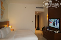 Номер: минибар пустой(, есть чайник, пакетики с чаем и кофе, 2 бутылки питьевой воды, уборка номера проводилась, кондиционер охлаждал хорошо. ЖК где-то на 49` 2 русских канала.