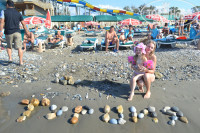 Море - мы нашли место с хорошим заходом до самой глубины, там и купались. В других местах и валуны и камни, не очень удобно. В октябре море было теплым и прозрачным. А вот бассейны детские уже были холодные, купаться не особо комфортно, хотя детей это не останавливало.