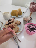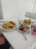Ресторан и летняя терраса.Еды хватает всем,каждое утро на завтрак свежевыжатый апельсиновый сок сколько хочешь,кофе любой,,сыры,бекон,ветчина,сосиски,яйца,омлет, яичница,овощи,фрукты,яблоки,апельсины,арбуз,дыня.Обед мясо говядина,свинина,курица и рыба пожалуйста,всё есть.дисерты правда все из печенья и крема и три вида.Круасаны, булочки.