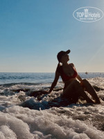 Первая береговая линия, не надо переходить никакие дороги что бы добраться до моря. Море очень чистое, кристальное. Сначала было спокойное, но под конец когда уезжали не много разбушевалось, были очень красивые волны.В море почти проводили все время. Заход постепенный, хороший.
