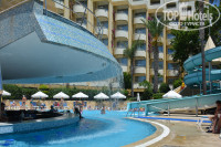 В Турции были первый раз, не планировали, отель не выбирали, а просто получили предложение от турагента в этот отель, как только открыли Турцию, кто-то отказался по раннему бронированию, подумали два часа и согласились лететь. Отель рекомендую - территория большая, отношение доброжелательное, кругом чистота, еды, фруктов, сладостей, напитков вариантов очень-очень много было. Понравилось, что напитки - пепси, газировка, айран, вода, молочный коктейль в упаковках всегда доступны, мороженое тоже в упаковках. Еду накладывали официанты, считаю, что так значительно лучше - никто не ковыряется и не нагребает горы от жадности. В номере - только жидкое мыло, шампуня нет. Пляжные полотенца выдают ежедневно. Лежаков везде хватало в любое время. Для малышей есть развлечения и неглубокий бассейн под куполом. В двух других бассейнах глубина везде одинаковая 1,35 м. В одном бассейне расположен бар. Есть водные горки для детей постарше, для взрослых горка на пирсе - падаешь в море. Заход в море - песок и немного мелкой гальки, бар на пляже есть, а также пицца и картошка в фольге там же. Есть вечерние шоу - очень понравились. Недалеко есть супермаркет, внутри магазин Мигрос, в котором можно расплачиваться как лирами так и долларами, спрашивают в какой валюте вам сдать сдачу. Рядом много сувенирных магазинов. Достопримечательностей как таковых рядом практически нет, ехать далековато. Гид сказал до Памуккале 4 часа, до Белека 1,5 ч. Из минусов - далековато от аэропорта, но дорога отличная. И к сожалению - разрешено курить абсолютно везде.