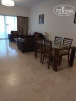 Тур был с третьего июля, все включено. Приехали в ночь с третьего на четвертое, турагент заранее просил оставить нам в номере ужин, тк перелет долгий. Но! Ужина в номере не было! Хорошо, что в самолете все-таки покормили горячим (ФлайДубай). И тк номер дали не однокомнатный (как мы заказывали), а двухкомнатный, то ругаться не пошла). Номер на третьем этаже, но фактически на пятом, тк первые два - служебные (с рестораном, ресепшн, бассейном, спа и пр.). В каждой комнате по балкону. В гостиной - большой, в спальне - маленький угловой. В гостиной чайник, холодильник, микроволновка - все работает. Кондиционер дул слишком активно, сами не справились - попросила на ресепшн, пришли, настроили как надо. Все исправно, хотя иногда немного глючит, ну да это не настолько критично. Постельное белье - супер!!! Кипенно белое, мягкое и плотное! Полотенца тоже классные!