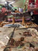 Есть закусочная с картошкой фри, бургеры, пицца . Мороженое каждый день, тортики, лепешки.