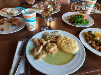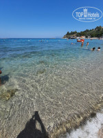 ультра все включено!!! Полотенца старые, но чистые. Аля карт рыбный вообще убил. Он , оказывается, размещается почти на пляже, на открытом пляжном баре, через который люди идут в трусах с пляжа. Просто жесть. А пол в этом Аля карт грязный, после обслуживания целого дня людей на баре.Банки с под воды валяются и даже их не убирают. Уборка там только утром. А официанты в ресторане-это отдельная тема. Попросишь что-то принести, исчезают с концами.Но(наверное после жалоб), было у них собрание и они стали работать лучше.Еда без изысков. Меня поразили🤣 их суши! Я даже и не знала, что рис с морковкой называются суши! С лососем было немного, размели их сразу. Люди как дикари, гребут, а потом все оставляют.За этими сушами простояли в очереди пол часа, а оказалось, что это рис и морковка и соуса почти нет. Мороженное хорошее, вафельки- такое. Вино белое ещё не плохое, а от красного в дрожь бросает. Самое классное-это море. Красивенный цвет воды.Есть песчаный заход, есть камянистые бухточки. Природа напоминает Крым. А вода-это что-то не реальное! Очень красивые закаты. Вода как стекло, прозрачная и голубая. После обеда поднимается ветерок и появляется шторм.На песчаном пляже классно попрыгать по волнам. Выезд из отеля был ранний, нам дали какой-то странный хот дог, на который нужно было заранее записаться, а потом, почти все от него отказались.В мини бар соки ложили 1,2 и последний день. Вода в бассейне очень мутная и очень горячая, не меняется. Но есть бассейн с морской водой, вода кипяток. В ресторане нет кондиционеров, в жару!!! Такого сервиса и обслуживания не видела ни в одном отеле. . Но природа, море к себе манит.