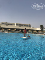 Территория хорошая, большой бассейн, море рядом. Лежаков хватало всегда и везде. Народу мало. За территорией нет ничего- заброшенные отели, пустое кафе и пару магазинчиков.