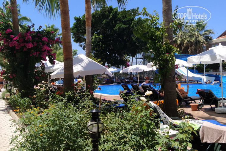 Территория отеля небольшая, но ее вполне достаточно. Все компактно, всё под рукой. Есть большой бассейн с двумя горками и маленький. Катались с горок, а в основном купались в море.