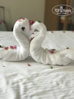 Пляж: попередньо, коли мені пропонували цей готель, я подивилась на фото пляжу, почитала відгуки і відхилила цей варіант, але потім на нього в один день вибило по ціні дуже класну пропозицію і ми погодились. Прийшовши на пляж ми були приємно здивовані, водичка в лагуні прозора і чистесенька, видно дно, просто з вигляду вона ніби темнувата за рахунок того, що там не повністю пісчане дно, але купатись в морі є де і дорослим і дітям, глибина лагуни в різних місцях на різний смак. Хто любить снорклінг може спускатись по пірсу, там вже починається глибина і корали. Також з лівої сторони від готелю є пляж закинутого готелю з прекрасним пісчаним заходом у відкрите море і прозорою водичкою, лежаків достатньо, оскільки вони розташовані на всій території лагуни і на острівцях. На території багато барів, де можна взяти щось попити а також перекусити, тільки на пляжі 2 бари і бар, де з 12 до 17 год запікались смачні млинці з сиром, куркою або мікс. Аніматори молодці, старались постійно розважити і дорослих і дітей, перевдягались в якихось казкових персонажів. Увесь персонал привітний, завжди всі вітаються і посміхаються до тебе. Єдиний неприємний момент був під час зустрічі з гідом ТUI здається Мохамедом, який годину розказував про екскурсії, а коли його попросили сказати які треба віддати йому документи, а потім хто бажає нехай далі розказує їм про інструкції почав буквально кричати і виганяти із зустрічі. Але звичайно це питання не до адміністрації готелю, а до керівництва TUI.