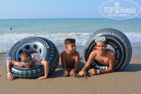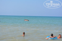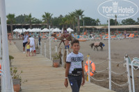 На море лежаки были свободны только в пятом ряду под навесом и ближе к морю без навеса тоже были свободные несколько штук. Лежаки далеко от моря, большая полоса за веревкой, куда нельзя их ставить, так как там места откладывания яиц черепахами. Пляж песочный, на входе мелкая галька. Глубоко быстро. Есть пирс с лежаками, за пирсом какие-то водные развлечения каждый день предлагались.