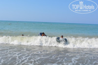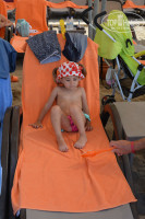Побросали мы чемоданы и отправились на море. По пути, конечно, куча бассейнов с горками. Дети сразу там покатались. Полотенца дают около горок и около пляжа.