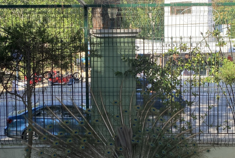 В номере всегда у нас были закрыты все двери и окна,поэтому звук с улицы практически не был слышен,только в туалете была всегда открыта маленькая форточка,через которую стрекотало и кукарекало.Кстати,вдоль забора налево от въезда располагается небольшой зоопарк.Две собаки,павлины,кролики,куры и голуби.Особенно часто мы проходили мимо павлинов и это было нашим развлечением.Павлины просто шикарные!!!Особенно с самым большим хвостом! Красавчик!