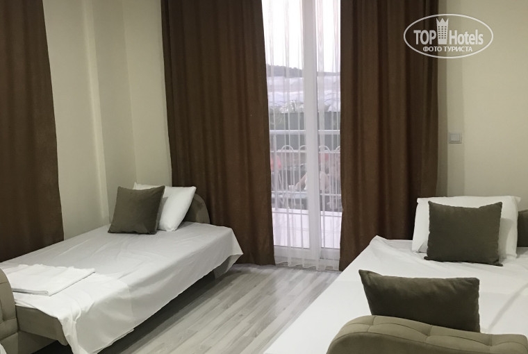 2. Номер family-room 2-х комнатный, светлый, просторный, с балконом, санузел, холодильник, телевизор, кондиционер в каждой комнате. Кровати удобные, постельное белье и полотенца чистые. Уборка номера и замена белья проводились.