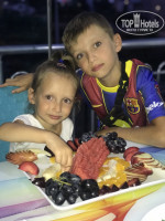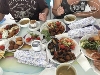 3. Питание. По обедам и ужинам вопросов нет- очень вкусные супы, на гарнир всегда есть рис, спагетти, макароны, картофель печёный, фри- на выбор; безумно вкусные овощи гриль, тушенные баклажаны с помидорами, кабачки, брокколи; большой выбор свежих салатов и овощей, соусов к ним. Из мяса- курица в разных вариациях, жареная, тушенная. Фрукты- арбуз, дыня, виноград, сливы, яблоки- все спелое и вкусное. К ужину были десерты- пахлава, бисквиты, пирог.
