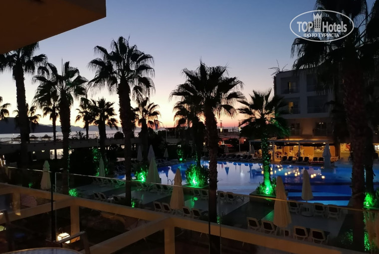 В отеле имеется 3 ресторана а-ля-карт: рыбный, китайский и турецкий. Но к сожалению попасть мы смогли только в турецкий. Очень неудобная запись в них: каждое утро идёшь занимаешь очередь, час стоишь, а потом выясняется, что мест не осталось. На другой день записаться нельзя, т.е. ты должен на следующий день опять идти занимать очередь и пытать счастье. Один раз нам удалось записаться в рыбный ресторан, но пошёл дождь и ужин отменили (т.к. ресторан находится в баре у моря,под открытым небом) Потом рыбный и китайский рестораны закрыли, обосновав это плохой погодой, хотя погода была еще замечательная вечером. Считаю, что можно было найти выход, и тем, кто не успел посетить эти рестораны, накрыть в помещении турецкого ресторана.