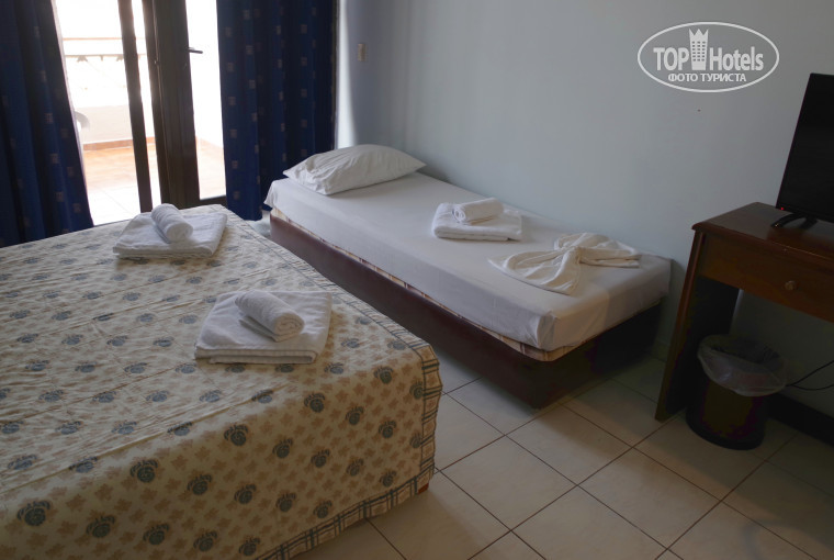 По фото номер у вас такой же (разница в телевизоре смотрю), ну и вид из окна. Так же у нас забронирован был с видом на сад, а в реальности на мусорные баки и парковку. Так же для понимая туристов, он очень маленький по площади, мы неоднократно отдыхали в однокомнатных номерах, но пространства было больше. Я думаю, чтобы увеличить для такого состава, можно было бы поставить двухярусную кровать, но номер конечно это наверно не настолько важно, тем более если туда приходить только для отдыха. Конечно можно купить, как ваши друзья, но цена вопроса, если туристы растачивают на определенную сумму и дни.