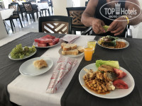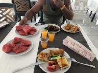 3. Еда. Я прочитала отзывы и посмотрела фото. Видимо до пандемии было все иначе. Сейчас открыт один ресторан. Завтраки вот максимально скудные, есть хлопья с молоком или йогуртом. Яйца и омлет(иногда с местной колбасой) ну и сыры, оливки, зелень. Хлеб, масло, варенье/мед)